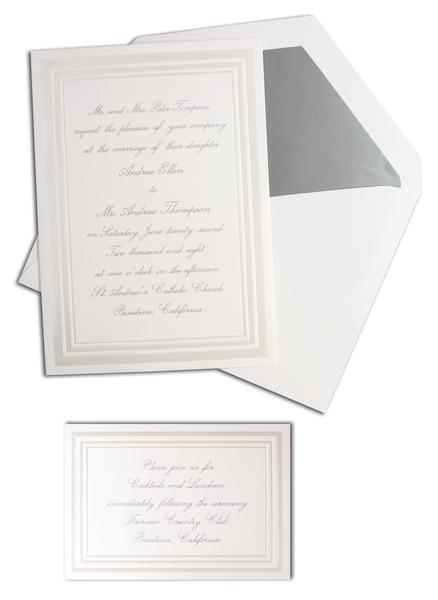Card is displayed with typestyles Charlemagne (copy) and Citadel (names) in Black ink. Envelope is displayed with DW-Taupe liner.