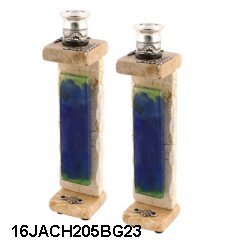 Ceramic Shabbat Candlestick Holders with Tray. 7"H